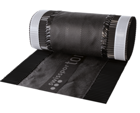 - Dodatkowego paska włókniny PP wzmacniającej taśmę w newralgicznym miejscu, mechanicznego mocowania do łaty kalenicowej,